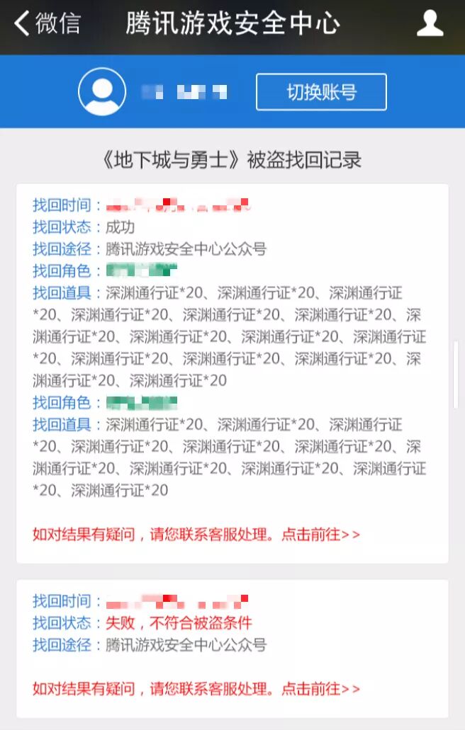 第六步:当完成以上步骤时,等待结果反馈即可。不论你的申请是否成功找回道具,公众号都会给你推送道具找回结果的消息哦!